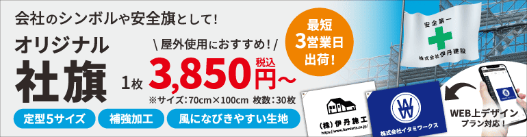 現場シートキングに新商品「社旗」がリリース!全5種類のサイズからオリジナル社旗を作成いただけます!